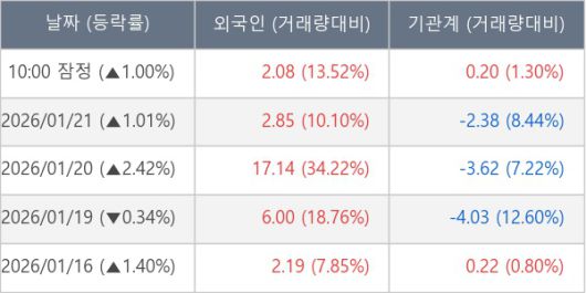 ※ 사모펀드 등 일부 기관의 순매매량은 표시되지 않음