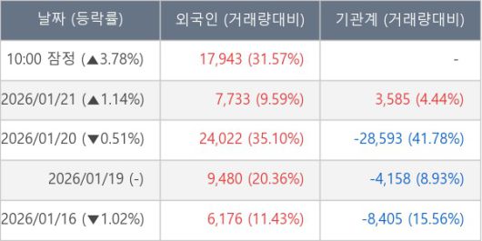 [표] 외국인ㆍ기관 순매매량 (단위 주)