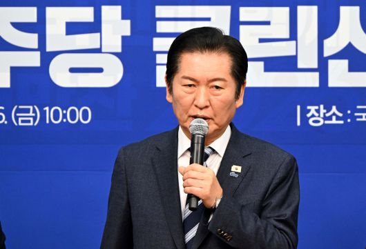 정청래 더불어민주당 대표가 16일 오전 서울 여의도 국회에서 열린 클린선거 선포식에서 발언하고 있다. 이상섭 기자 |