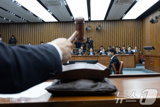 (서울=뉴스1) 이승배 기자 = 22일 서울 여의도 국회에서 열린 제431회국회(임시회) 국토교통위원회 12.29 여객기 참사 진상규명을 위한 국정조사특별위원회 청문회에서 이양수 위원장이 의사봉을 두드리고 있다. 2026.1.22/뉴스1photolee@news1.krCopyright ⓒ 뉴스1. All rights reserved. 무단 전재 및 재배포, AI학습 이용 금지.
