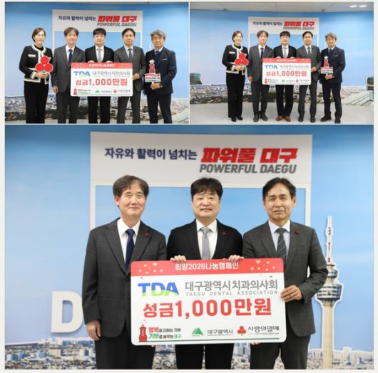 한편, 대구광역시는 "대구시치과의사회가 취약계층 치과 진료 지원과 사랑의 연탄 나눔 등 다양한 활동으로 지역사회에 공헌해 왔다. 특히 2015년부터 시행 중인 '희망의 징검다리 사업'을 통해 독거노인과 장애인 등 1,365명에게 9,461건의 무료 치과 치료를 제공해 왔으며, 현재까지의 누적 진료비 혜택은 약 57억 원에 이른다."고 밝혔다.