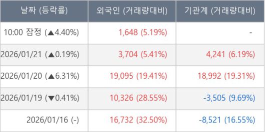 [표] 외국인ㆍ기관 순매매량 (단위 주)