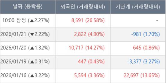 [표] 외국인ㆍ기관 순매매량 (단위 주)