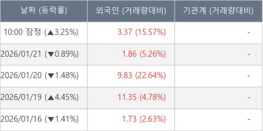 [표] 외국인ㆍ기관 순매매량 (단위 만주)