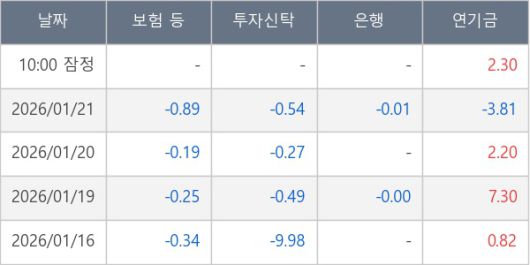 [표] 주요 기관별 순매매량 (단위 만주)