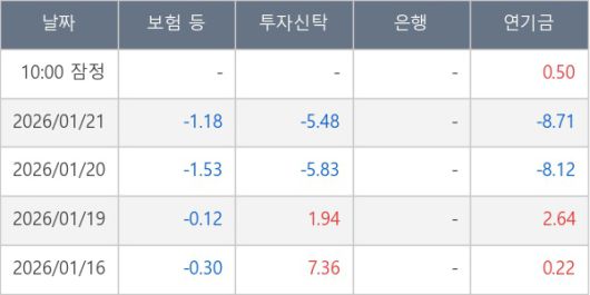 [표] 주요 기관별 순매매량 (단위 만주)