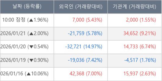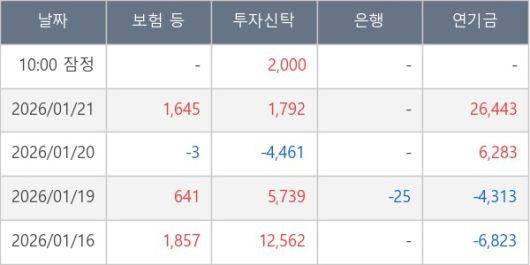 [표] 주요 기관별 순매매량 (단위 주)