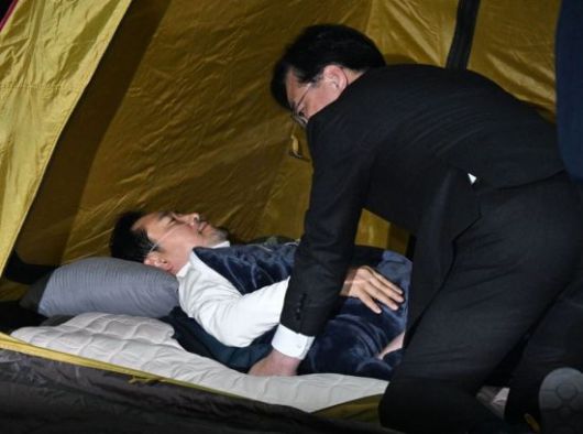 송언석 국민의힘 원내대표가 22일 국회 로텐더홀에서 통일교·공천헌금 '쌍특검' 수용을 요구하며 여드레째 단식 중인 장동혁 대표를 살펴보고 있다. <ⓒ투자가를 위한 경제콘텐츠 플랫폼, 아시아경제(www.asiae.co.kr) 무단전재 배포금지>