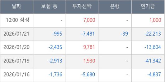 [표] 주요 기관별 순매매량 (단위 주)