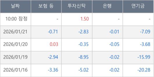 [표] 주요 기관별 순매매량 (단위 만주)