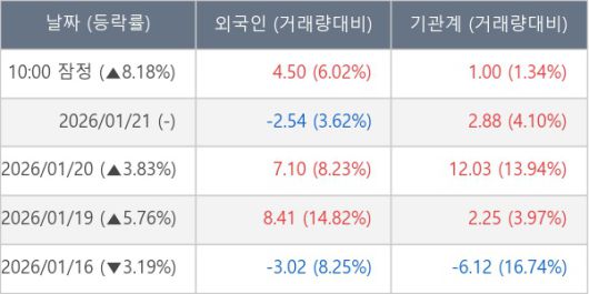 ※ 사모펀드 등 일부 기관의 순매매량은 표시되지 않음