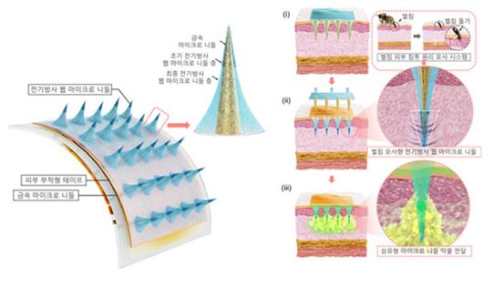 공동연구팀은 수일간 통증없이 부착이 가능한 벌침 모사형 유연 나노섬유 마이크로 니들을 개발했다.