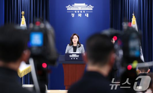 (서울=뉴스1) 허경 기자 = 강유정 대변인이 22일 청와대 춘추관에서 캄보디아 스캠 조직 피의자 송환 관련 브리핑을 하고 있다. 2026.1.22/뉴스1