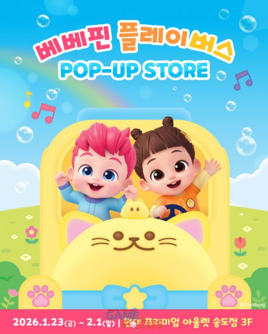 더핑크퐁컴퍼니 관계자는 “가족 단위 방문객에게 최적화된 현대프리미엄아울렛 송도점의 공간적 특성과 베베핀 IP의 친근한 매력을 결합해 온 가족이 만족할 수 있는 팝업스토어를 기획했다”며, “설 연휴를 앞두고 아이들에게는 잊지 못할 추억을, 부모에게는 편안한 휴식을 제공하는 체험형 키즈 랜드마크가 되길 기대한다”고 전했다.