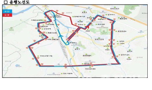 옥천읍 공공거점 순환버스 운행노선. |