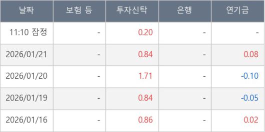 [표] 주요 기관별 순매매량 (단위 만주)