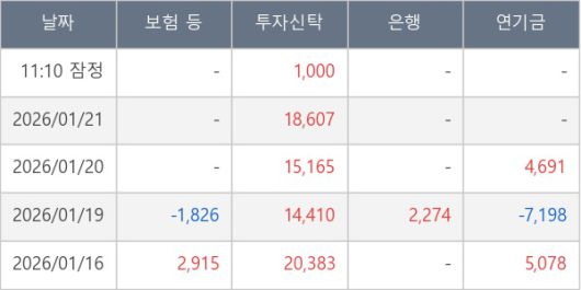 [표] 주요 기관별 순매매량 (단위 주)