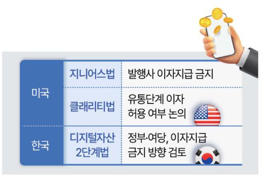 업계에서는 해당 논의를 두고 기존 정책 방향성과는 결이 다른 사안이라는 평가를 내놨다. 현재 준비 중인 디지털자산 2단계 법안에서는 스테이블코인을 결제·정산 수단으로 규정하고 이자 지급을 허용하지 않는 방향으로 논의가 이어져 왔기 때문이다. 이자를 지급할 경우 스테이블코인의 성격이 투자 상품으로 해석돼 증권성 논란으로 번질 수 있다는 우려도 제기돼 왔다.