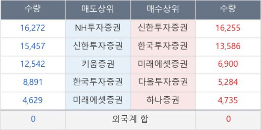 [표] 외국인ㆍ기관 순매매량 (단위 주)