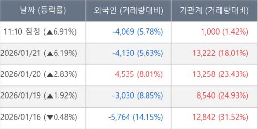 ※ 사모펀드 등 일부 기관의 순매매량은 표시되지 않음