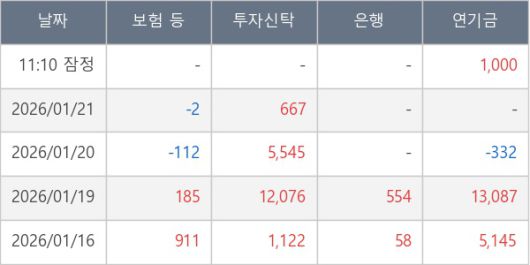 [표] 주요 기관별 순매매량 (단위 주)