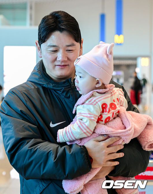 키움 최주환이 출국을 앞두고 자녀와 인사를 나누고 있다. 2026.01.22 / dreamer@osen.co.kr