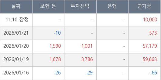 [표] 주요 기관별 순매매량 (단위 주)