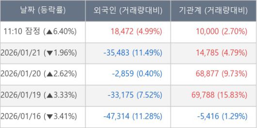 ※ 사모펀드 등 일부 기관의 순매매량은 표시되지 않음