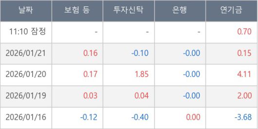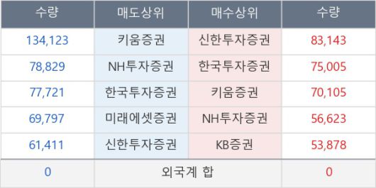 [표] 주요 기관별 순매매량 (단위 만주)