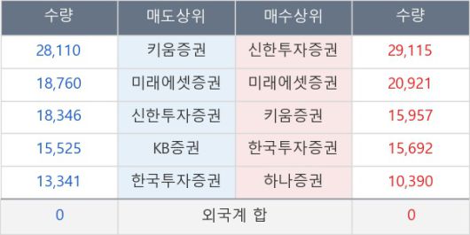 [표] 외국인ㆍ기관 순매매량 (단위 주)
