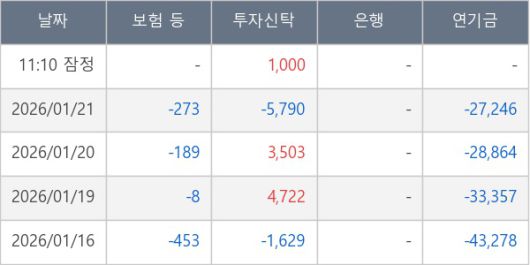 [표] 주요 기관별 순매매량 (단위 주)