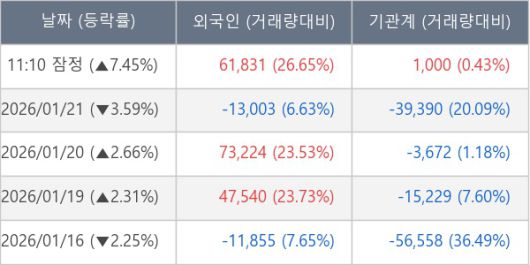 ※ 사모펀드 등 일부 기관의 순매매량은 표시되지 않음