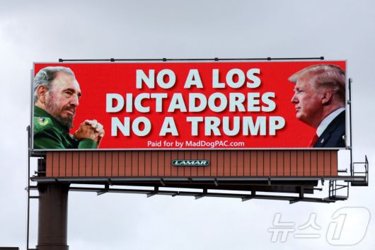 스페인어로 "독재자 반대, 트럼프 반대"라고 쓰인 광고판이 19일(현지시간) 플로리다주 하이얼리아에 걸려 있다. (자료사진) 2024.06.19. ⓒ AFP=뉴스1 ⓒ News1 김민재 기자 |