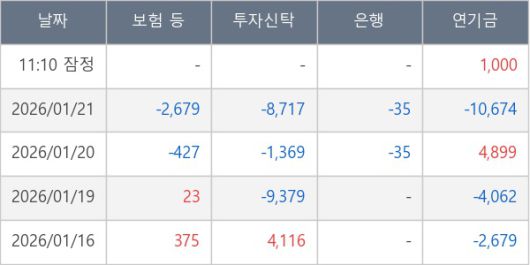 [표] 주요 기관별 순매매량 (단위 주)