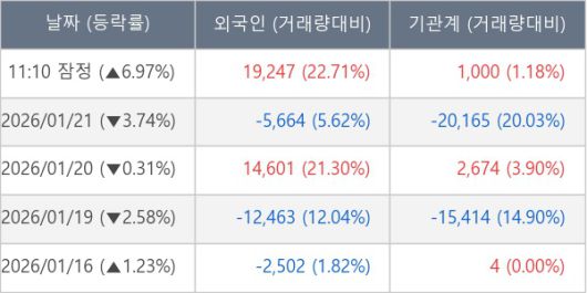 ※ 사모펀드 등 일부 기관의 순매매량은 표시되지 않음