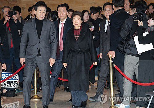 (서울=연합뉴스) 이동해 기자 = 박근혜 전 대통령이 22일 통일교·공천헌금 '쌍특검' 수용을 요구하며 여드레째 단식 중인 국민의힘 장동혁 대표를 방문하기 위해 국회 로텐더홀 단식 농성장으로 향하고 있다. 2026.1.22 [공동취재]