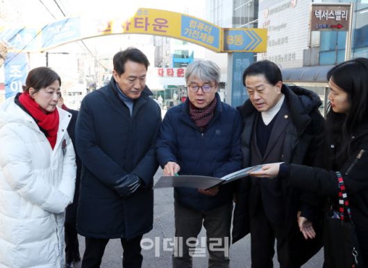 [이데일리 김태형 기자] 오세훈 서울시장이 22일 오전 서울 용산구 용산전자상가 재개발구역을 방문해 관계자들과 대화를 하고 있다. 오 시장은 이날 상인 및 지역주민 등과 간담회를 가졌다.