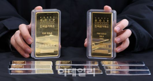 [이데일리 방인권 기자] 그린란드사태로 미국과 유럽간 대립 격화할 것이라는 우려에 안전자산에 대한 선호가 강해지며 국제금값이 계속 상승하고 있는 가운데 22일 서울 종로구 한국거래소에 골드바가 전시되어 있다.
