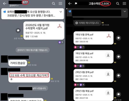 두 사람을 포함한 교사와 학원 강사 46명은 지난 2019년 6월부터 지난해 6월까지 수능 모의평가 문제지를 여러 채팅방에서 유출·유포했다. 고등교육법상 모의평가 문제는 매 교시가 끝난 이후(중증 시각장애 수험생 기준)에 공개하도록 하는데, 이들은 그보다 앞서 문제지를 공유해왔다. 일부 참여자가 ‘시험이 끝나지 않았는데 시험지가 돌아다녀도 되는지’ 문제를 제기하기도 했으나, 대개는 ‘고2 6모(6월 모의고사) 수학 있으신 분 계신가요?’ 등의 메시지를 보내며 범행을 대수롭지 않게 여겼던 것으로 보인다.