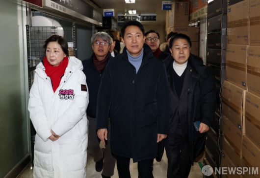 [서울=뉴스핌] 정일구 기자 = 용산전자상가 현장 점검에 나선 오세훈 서울시장이 22일 오전 서울 용산구 선인상가에서 내부를 둘러보고 있다. 2026.01.22 mironj19@newspim.com |