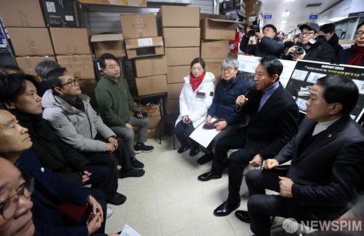 [서울=뉴스핌] 정일구 기자 = 용산전자상가 현장 점검에 나선 오세훈 서울시장이 22일 오전 서울 용산구 선인상가에서 열린 상가 소유자·상인·지역주민 현장 간담회에서 발언을 하고 있다. 2026.01.22 mironj19@newspim.com