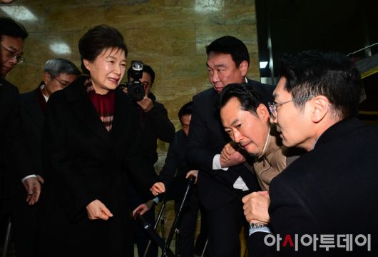 아시아투데이 이병화 기자 = 박근혜 전 대통령이 22일 쌍특검(통일교·민주당 공천 뇌물 특검)을 요구하며 8일째 단식을 이어가는 장동혁 국민의힘 대표의 단식 농성장을 방문하고 있다.