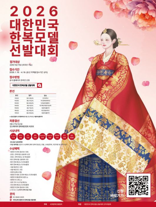 대회 조직위원회에 따르면 2026년 참가자 접수는 지난 19일부터 오는 4월 19일까지 3개월간 진행된다. 지원 대상은 20세 이상 여성으로 외국인도 신청할 수 있다. 접수는 공식 홈페이지를 통한 온라인 방식으로 이뤄진다. 연령별 경합 구조를 채택해 문턱을 낮췄고, 외형미보다 한복에 대한 이해와 표현력, 문화적 스토리를 중시하는 방식으로 평가한다.