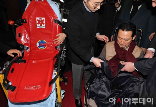 아시아투데이 송의주 기자 = 통일교·공천헌금 '쌍특검'을 요구하며 8일째 단식을 진행 중인 장동혁 국민의힘 대표가 22일 서울 여의도 국회에서 단식을 중단하고 병원으로 이송되고 있다. ⓒ "젊은 파워, 모바일 넘버원 아시아투데이"