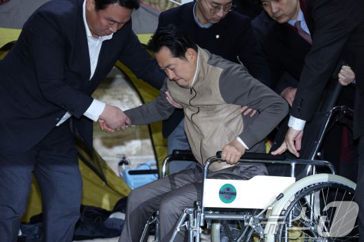 휠체어 오르는 장동혁 대표