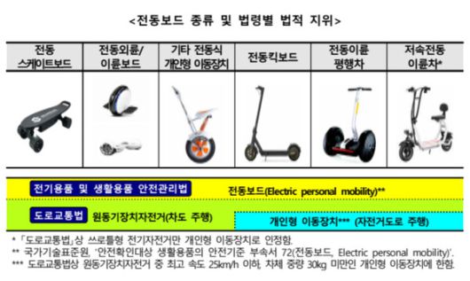 전동보드 종류 및 법령별 법적 지위 /한국소비자원 |