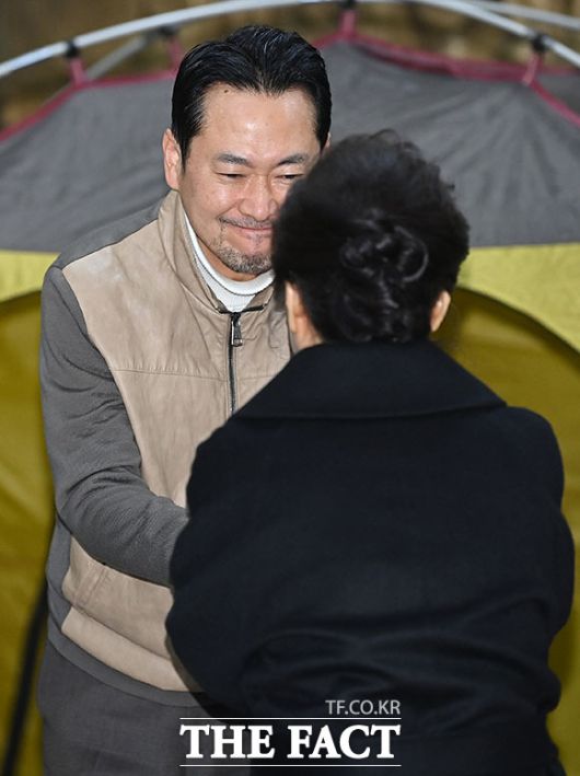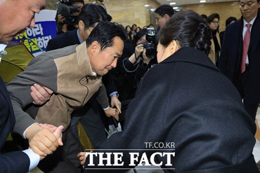 [더팩트ㅣ국회=남용희 기자] 박근혜 전 대통령이 22일 오전 서울 여의도 국회 로텐더홀에서 단식투쟁 8일차를 맞은 장동혁 국민의힘 대표를 만나고 있다.