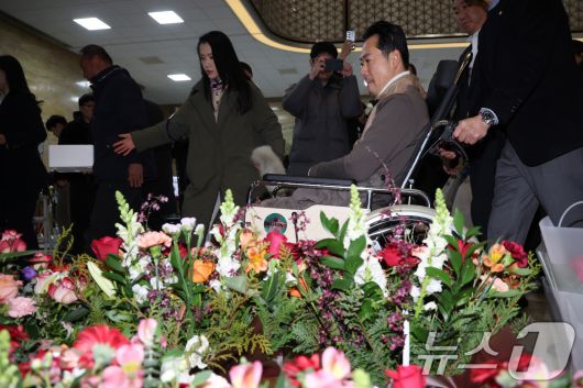 (서울=뉴스1) 국회사진기자단 = 8일 만에 단식 중단을 선언한 장동혁 국민의힘 대표가 22일 서울 여의도 국회에서 병원으로 이송되고 있다. 2026.1.22/뉴스1phonalist@news1.krCopyright ⓒ 뉴스1. All rights reserved. 무단 전재 및 재배포, AI학습 이용 금지.