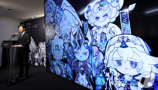 (서울=뉴스1) 최지환 기자 = 조길현 데브시스터즈 대표가 22일 서울 종로구 아라아트센터에서 열린 '쿠키런: 킹덤 아트 콜라보 프로젝트 특별전 - 위대한 왕국의 유산' 언론공개회에서 발언하고 있다. 이번 특별전은 데브시스터즈가 지난 2년간 이어 온 아트 콜라보 프로젝트를 총망라한 전시로 오는 23일부터 4월 12일까지 개최된다. 2026.1.22/뉴스1