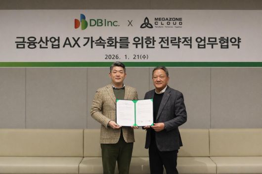 AI·클라우드 전문기업 메가존클라우드와 DB그룹 IT서비스 계열사 DB Inc.는 금융권 고객의 AI 전환 지원을 위한 전략적 업무협약을 체결했다고 밝혔다. 협약식은 21일 서울 삼성동 DB Inc. 본사에서 열렸으며, 양사 주요 관계자들이 참석했다.